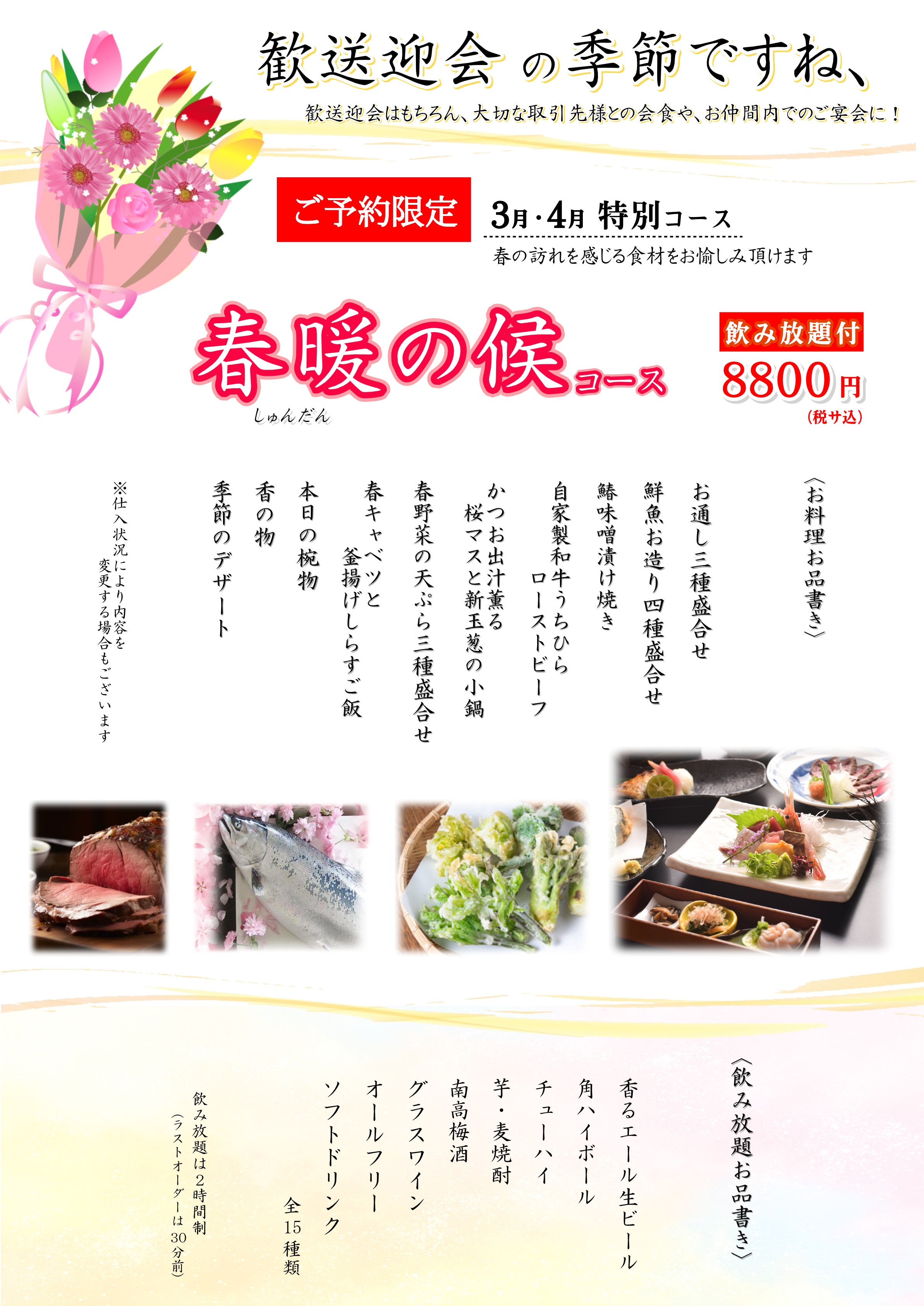 いつもよし田をご利用いただき誠にありがとうございます。 淀屋橋店にて3,4月限定 春暖の候コースを開始いたします。 出会いと門出を祝う大切な席に、季節の恵みを丁寧に仕立てたお料理とともに、よし田で、華やかな歓送迎会を。 詳しくは上記画像をご覧ください。 《ご予約はこちらから》 ●淀屋橋店:06-6208-1780 ぜひ、ご予約お待ちしております!